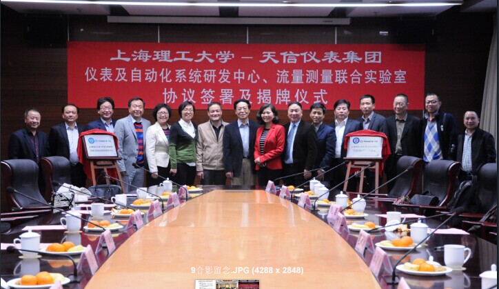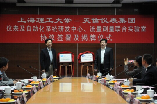 2014年11月25日下午,由上海理工大學與天信儀表集團有限公司合作建立的“上海理工大學—天信儀表集團儀表自動化系統(tǒng)研發(fā)中心、流量測量聯(lián)合實驗室”正式掛牌使用。上海市教委科技發(fā)展中心主任許開宇等教委領(lǐng)導、上海理工大學副校長鄭剛等校方領(lǐng)導、蒼南縣副縣長林朝朝等政府領(lǐng)導、天信儀表集團總裁范叔沙等企業(yè)代表出席揭牌儀式,并由上理工光電學院院長莊松林院士和天信儀表集團常務(wù)副總裁兼總工葉朋揭牌。
