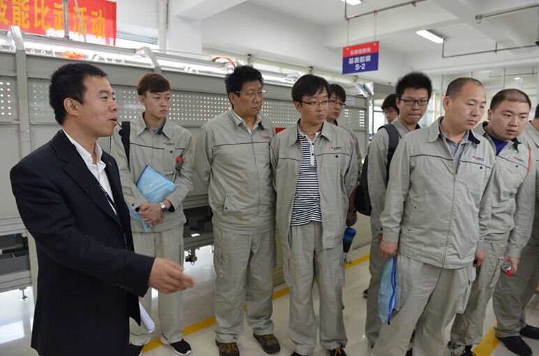 隨后,學員們分兩批在天信章欽養講師、陶朝建講師的帶領下參觀天信,高科技的展廳、規范整潔的生產車間、細致的看板管理、企業文化建設等方面,都引起了大家濃厚的興趣。