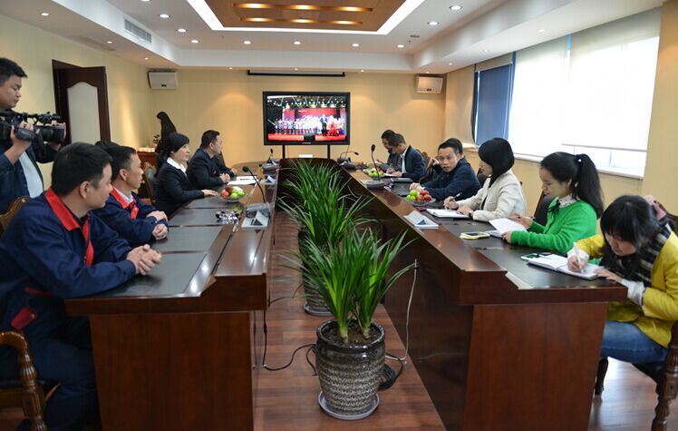 2015年4月23日下午,溫州市總工會副主席程龍鳳一行來到天信調研工會工作,蒼南縣總工會主席曾玲艷、公司副總裁高小琴、工會主席顏勐敏等陪同調研。