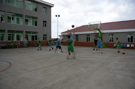 參觀后,一場軍民籃球賽隨即激烈上演。雙方球員本著“友誼第一,比賽第二”的原則,在賽場上奮力拼搏、積極進攻、全力防守、默契配合,共同為在場觀眾奉獻(xiàn)了一場精彩的比賽,最后比分為87:83,天信隊以微弱的優(yōu)勢勝出。