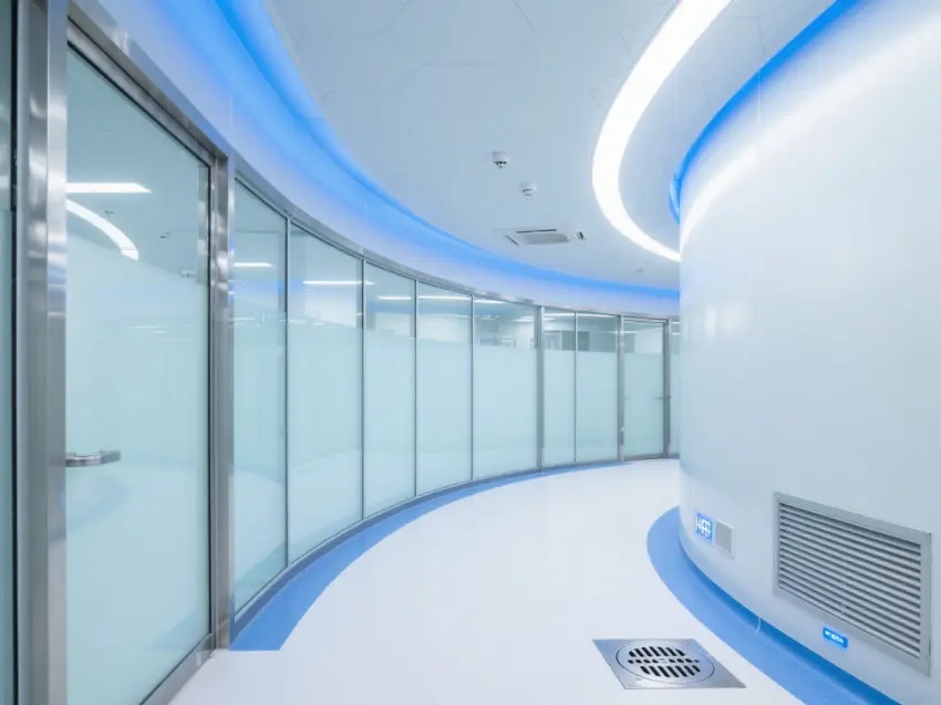 車間內設有多個玻璃門和窗戶,既保證了空間的通透感,又便于觀察內部情況。天花板上安裝了多盞方形的照明燈,提供充足的光線,同時還有通風設備,確保空氣流通。