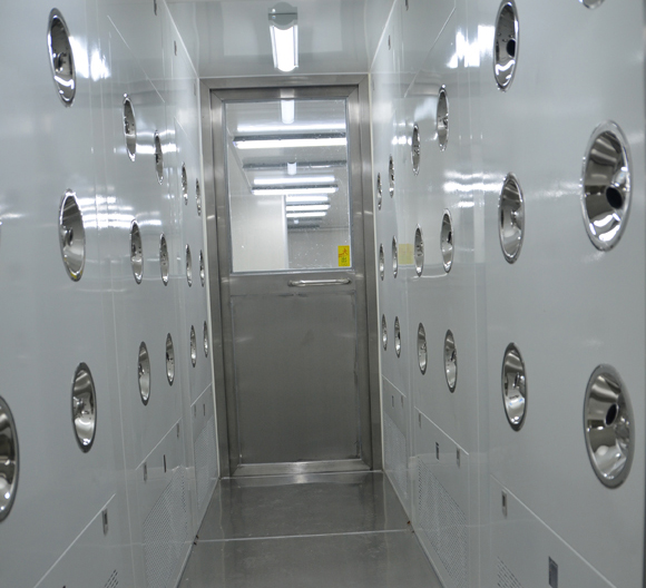 通往潔凈區必經之路—風淋室,是人員或貨位進入潔凈區由風機通過風淋噴嘴噴出經過高效過濾的潔凈強風吹除人或物體表面吸附塵埃的一種通用性很強的局部凈化設備。