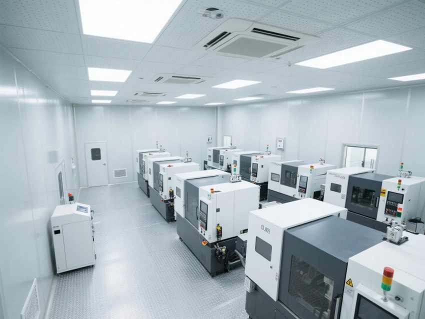 模塊化功能單元:劃分微米級加工區(qū)(黃光照明)、光學檢測區(qū)(黑箱設(shè)計)、物料緩存區(qū)(負壓隔離)