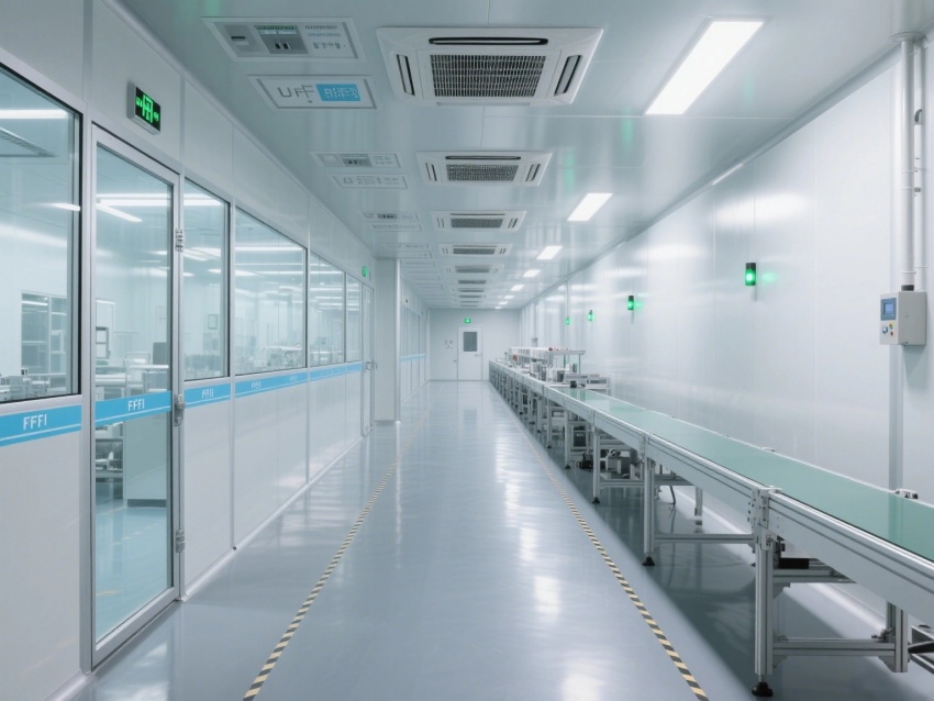 生產(chǎn)線配備全自動晶圓傳送機(jī)械臂、激光焊接設(shè)備,透明防塵罩與實時粒子計數(shù)器確保工藝穩(wěn)定性。走廊設(shè)置防靜電地板與人員凈化通道,風(fēng)淋時間嚴(yán)格控制在30秒,全方位滿足微電子元件的超高潔凈生產(chǎn)需求。