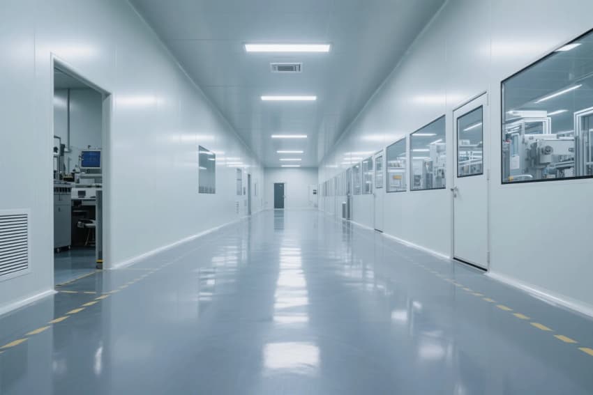 本工程嚴(yán)格依據(jù)ISO14644-1Class7潔凈標(biāo)準(zhǔn),采用"工業(yè)4.0"設(shè)計(jì)理念,打造智能化電子光伏生產(chǎn)環(huán)境。主體結(jié)構(gòu)采用模塊化潔凈室系統(tǒng),50mm厚深灰抗菌彩鋼板墻體與淺灰防靜電環(huán)氧自流平地坪形成未來(lái)工業(yè)美學(xué)基調(diào),表面電阻穩(wěn)定控制在10^6-10^9Ω范圍。