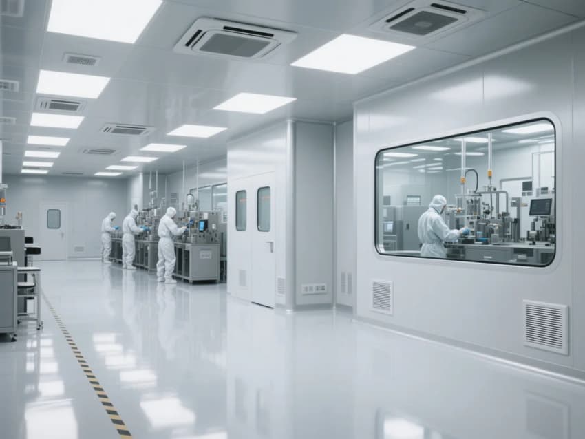 智能控制系統(tǒng)集成環(huán)境監(jiān)測(cè)(溫濕度/潔凈度/壓差)、設(shè)備聯(lián)動(dòng)和能源管理三大模塊,通過(guò)墻裝LED智能看板實(shí)現(xiàn)數(shù)據(jù)可視化。照明系統(tǒng)采用600x1200mm潔凈平板燈,照度維持800Lux±10%,重點(diǎn)工位增設(shè)局部黃光照明。工程整體通過(guò)模塊化設(shè)計(jì)、智能化控制和標(biāo)準(zhǔn)化施工,實(shí)現(xiàn)電子光伏廠房在潔凈度、能效比和生產(chǎn)效率的最優(yōu)平衡。