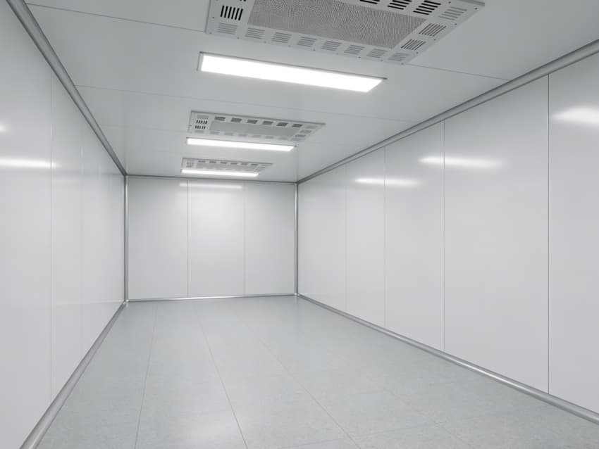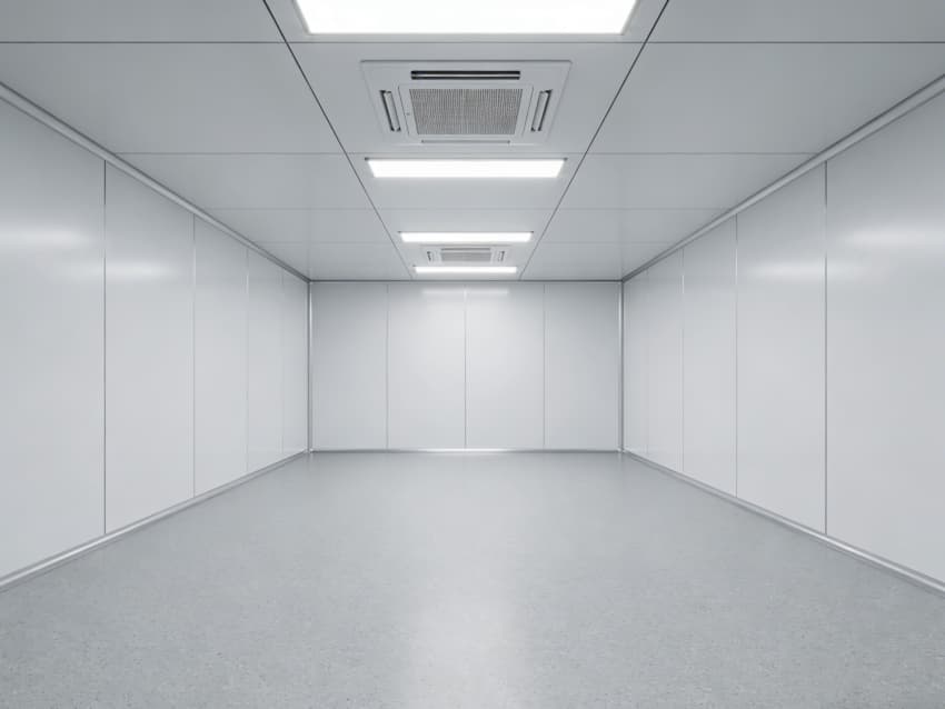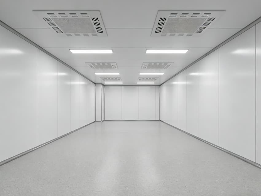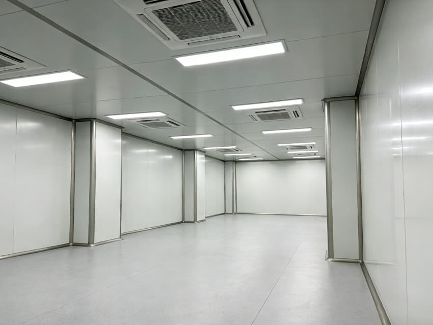 本次呈現(xiàn)的電子精密器件工廠車(chē)間以“高精度施工、高潔凈適配”為核心,融合多項(xiàng)專(zhuān)業(yè)施工工藝,車(chē)間內(nèi)部施工工藝凸顯精密特性:地面采用淺灰色環(huán)氧防靜電自流平工藝,經(jīng)基層拋丸處理、界面劑涂刷、環(huán)氧砂漿找平、自流平罩面四道核心工序,表面平整度誤差≤0.8mm/m,防靜電性能達(dá)10?-10?Ω;墻面采用白色潔凈抗菌涂層施工,推行無(wú)縫拼接技術(shù),陰陽(yáng)角采用R50圓弧倒角工藝,杜絕積塵死角,涂層硬度達(dá)2H以上,耐受頻繁清潔。