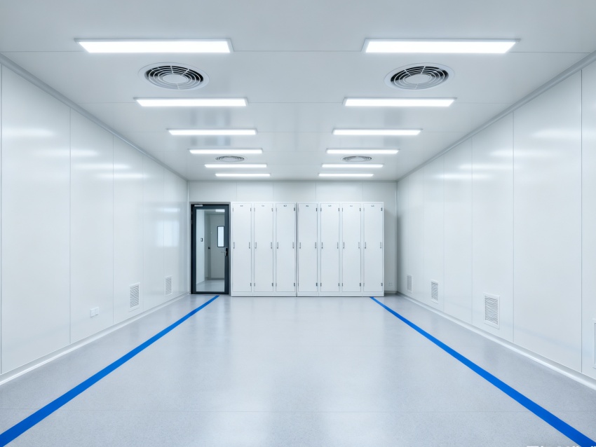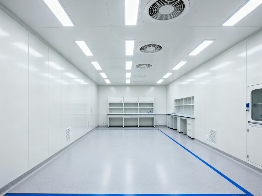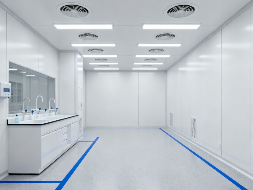 實驗室潔凈度嚴格遵循萬級標準(ISO8級),每立方米空氣中≥0.5μm微粒數(shù)≤352000個,采用初效-中效-高效三級空氣過濾系統(tǒng),配合垂直層流送風設計,實現(xiàn)每小時20-25次空氣置換。室內墻面采用耐腐蝕潔凈彩鋼板,地面為PVC無菌卷材,所有接縫做密封處理;溫度控制在22±2℃、相對濕度50±5%RH,部分區(qū)域維持5-8Pa負壓,有效防止交叉污染,符合生物安全實驗室建設規(guī)范。