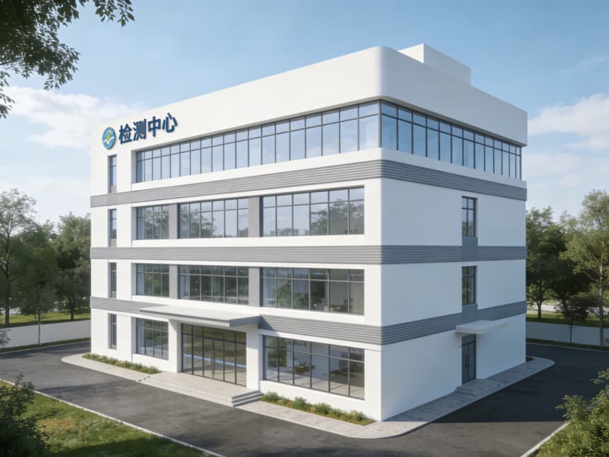 本次呈現(xiàn)的檢測中心整體風格簡約嚴謹、專業(yè)統(tǒng)一,完美適配各類樣品檢測、精度校準、數據分析等場景需求。檢測中心外立面采用淺灰色石材搭配大面積透明玻璃幕墻,既彰顯檢測場所的沉穩(wěn)專業(yè),又保障內部充足自然光,入口區(qū)域設無障礙通道及標識系統(tǒng),兼顧實用性與便捷性。