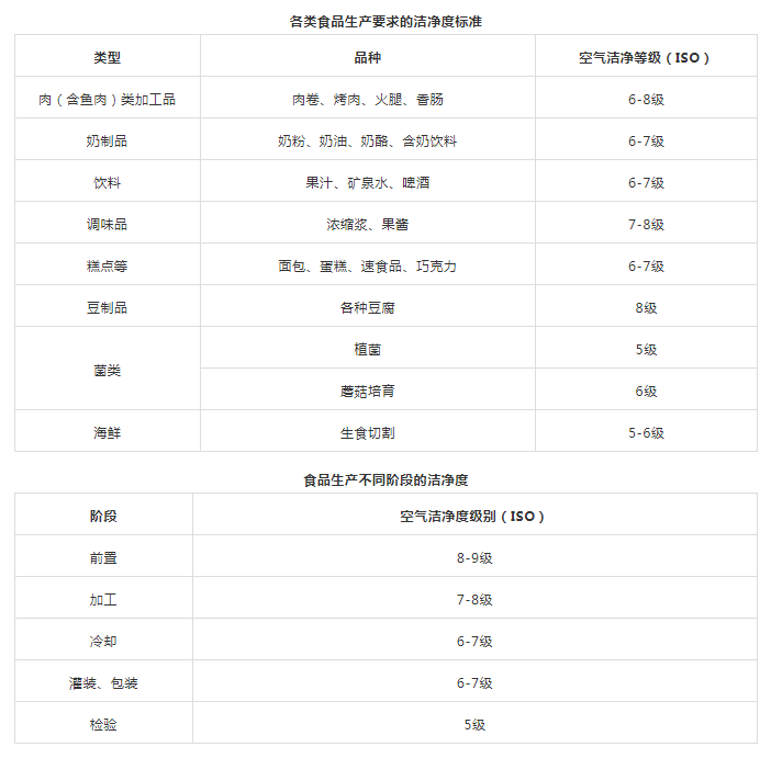 3、清潔作業(yè)區(qū)(潔凈室):指衛(wèi)生環(huán)境要求最高,人員、環(huán)境要求較高,必須經(jīng)過(guò)消毒和更衣才可以進(jìn)入,如:原料、成品裸露的處理區(qū)域,食食品的冷加工間、即食食品的冷卻間、待包裝即食食品的儲(chǔ)存間、即食食品的內(nèi)包裝間等。食品廠不同生產(chǎn)區(qū)域和空氣潔凈度等級(jí)
