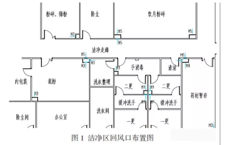 1)風口風速不能過大,盡可能在潔凈室對角或?qū)?cè)布置,同時,應(yīng)避免布置在潔凈度要求高的區(qū)域或設(shè)備近旁,排風口盡量靠近污染源;