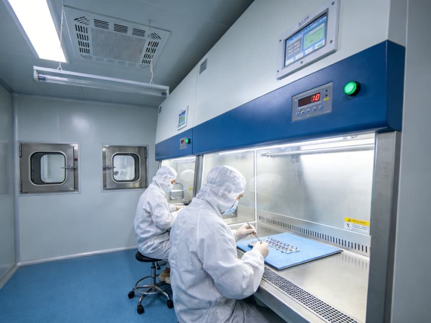 白色墻面采用食品級無菌抗菌涂層,推行無縫拼接與高精度找直工藝,陰陽角采用R50圓弧倒角設計,徹底消除清潔死角,潔凈度穩定達到Class 7級以上標準。廠房科學劃分無菌裝配區、生物安全區、精密檢測區等核心區域,各區域配備獨立層流凈化與負壓隔離系統,裝配區預留恒溫恒濕精準調控接口,檢測區設置無菌觀察窗口與專用物料傳遞通道,全方位保障生產全流程的生物安全性與合規性,筑牢植入性醫療器械高品質生產根基。