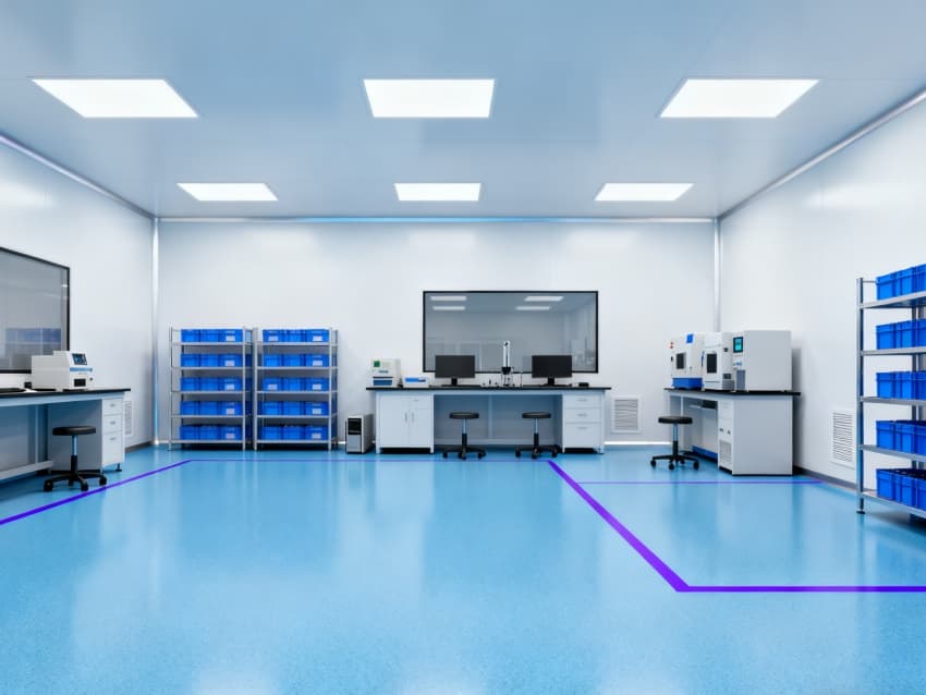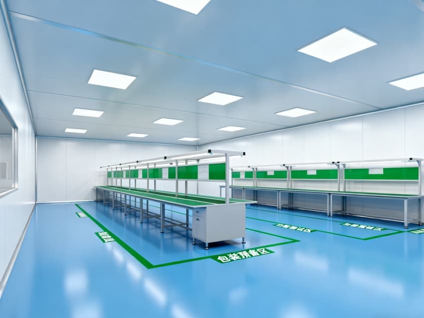 車間整體采用工業(yè)極簡(jiǎn)主義設(shè)計(jì)風(fēng)格,以藍(lán)白為主色調(diào)實(shí)現(xiàn)功能分區(qū)可視化:地面選用定制化藍(lán)色防靜電環(huán)氧地坪,經(jīng)三層復(fù)合工藝處理,表面電阻值穩(wěn)定維持在10?-10?Ω標(biāo)準(zhǔn)區(qū)間,不僅能有效泄放靜電,更通過(guò)添加納米級(jí)耐磨顆粒提升抗壓強(qiáng)度,配合防滑紋理設(shè)計(jì),確保日均萬(wàn)步以上的高頻作業(yè)場(chǎng)景下仍能保持表面完整性;四周白色防塵墻壁采用啞光抗菌涂層,配合弧形墻角設(shè)計(jì)消除積塵死角,在減少光線反射干擾的同時(shí),可抑制99.9%的常見(jiàn)微生物滋生。頂部集成FFU(風(fēng)機(jī)過(guò)濾單元)陣列與智能氣流監(jiān)測(cè)系統(tǒng),通過(guò)12級(jí)梯度風(fēng)壓調(diào)控,實(shí)現(xiàn)每小時(shí)600次換氣頻率,持續(xù)維持ISO5級(jí)(千級(jí))潔凈度標(biāo)準(zhǔn),確保直徑≥0.5μm的懸浮粒子濃度控制在35200個(gè)/m³以內(nèi),全方位隔絕粉塵、纖維、微生物等污染源對(duì)精密元器件的潛在威脅。